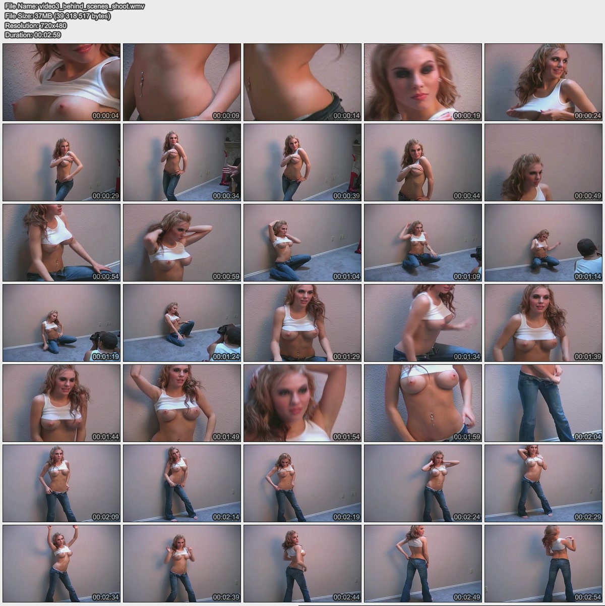 File Name : video3_behind_scenes_shoot.wmv | File Size : 37.5 MB | Resolution : 720x480 | Duration : 00:02:58 | Video : VC-1 (WMV3), 1 686 Kbps, 29.970 fps | Audio : WMA (WMA2), 64.0 Kbps (CBR), 44.1 KHz, 2 channels, 1 stream   Вам необходимо ЗАРЕГИСТРИРОВАТЬСЯ НА ФОРУМЕ, чтобы скачать файл.