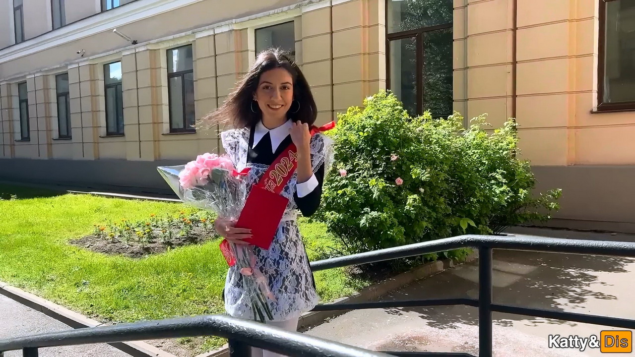 Катя (Katty West) в 30 лет, наконец-то закончила школу и её тут же трахнули в рот и в попу.