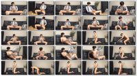 Ah, ah. It feels good." Shoki gives a blowjob to the strap-on while also stroking his own dick! And then he gets fucked and cums.
