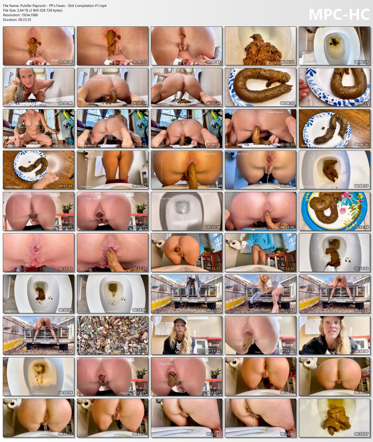 Описание: Here is a compilation of 11 fabulous shits… over 23 minutes of massive, stinky poop! These are some of my favorites from over the past year. I hope you enjoy the variation in poses, locations, textures, and size! How many times will you cum before making it through to the end?