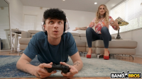 game and joins stepmom. He begins by eating her out and taking off all her lingerie. From there, she sucks his huge fat cock