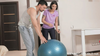 dude helps her to stretch her muscles and to work out but, somewhere in the middle of the session, he starts