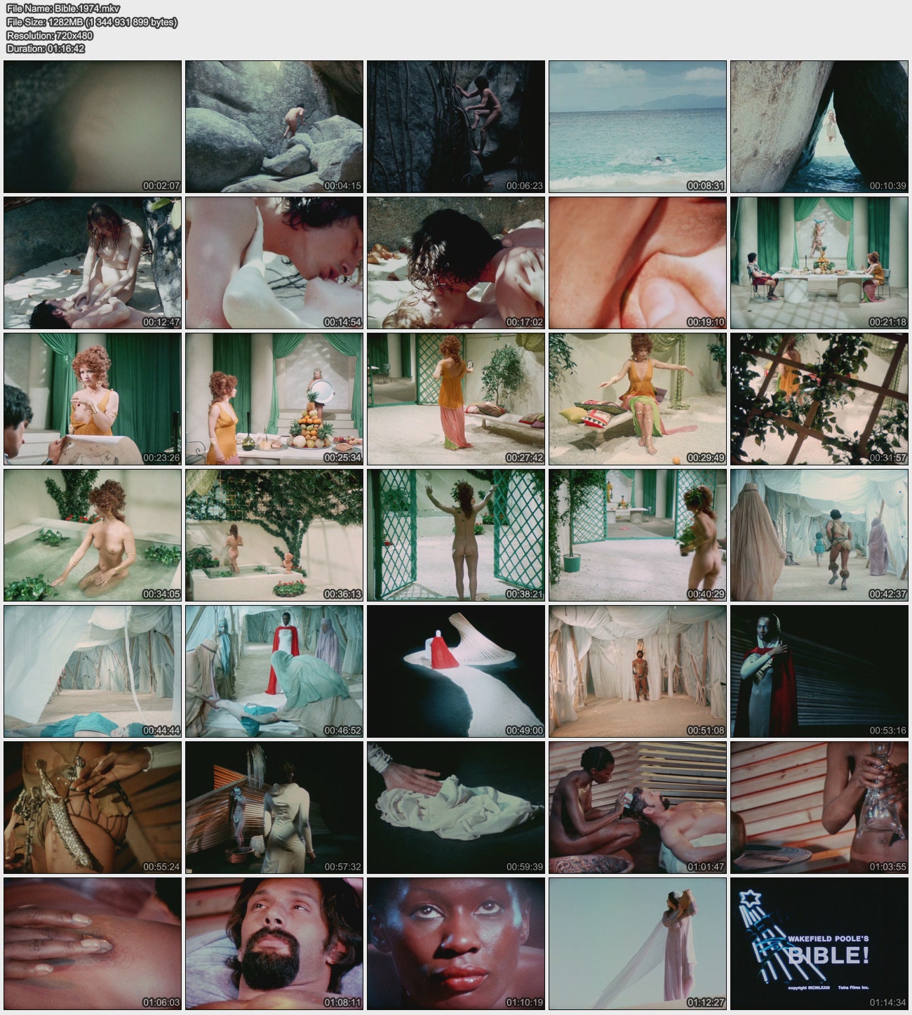 Описание: An anthology film crafted from three stories from The Bible: First story is, of course, Adam & Eve. A nude Adam (Bo White) crawls and swims through odd rock formations (I suppose to simulate the birth canal) and eventually ends up on a beach. Eve eventually emerges from the sea and the two have sex. Next is the story of Bathsheba (Georgina Spelvin) and Uriah. Bathsheba, feeling ignored by her husband Uriah (Robert Benes) seeks the company of peeping tom David (John Horn). And last, Samson and Delilah: When Samson (Brahm van Zetten) murders one of Delilah's (Gloria Grant) dwarf friends, she vows revenge.