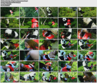 walking alone in the forest, and guess whom she met! No, it wasn't a wolf, it was a huge and horny panda bear! He wasn't gonna eat her, all he wanted
