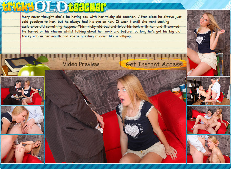 Mary never thought she'd be having sex with her tricky old teacher. After class he always just said goodbye to her, but he always had his eye on her. It wasn't until she went seeking assistance did something happen. This tricky old bastard tried his luck with her and it worked. He turned on his charms whilst talking about her work and before too long he's got his big old tricky nob in her mouth and she is guzzling it down like a lollipop.