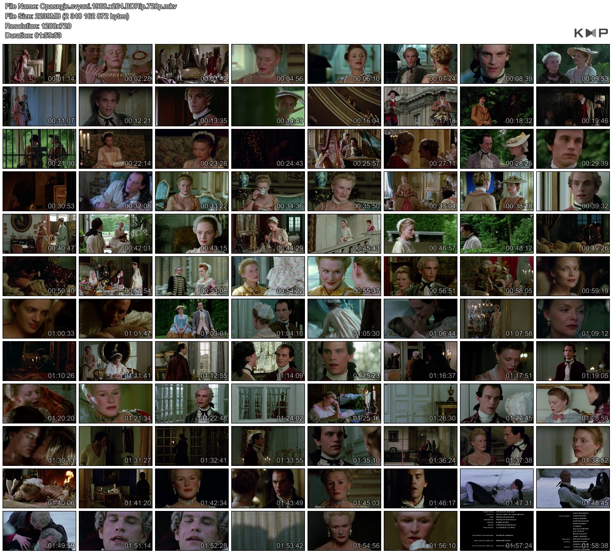 Описание: Франция XVIII столетия. Виконт Вальмон и маркиза де Мертей ведут опасную, чреватую разбитыми сердцами и искалеченными судьбами, игру. Маркиза, желая отомстить давнему любовнику Жеркуру, обещает Вальмону свою благосклонность, если он соблазнит Сесиль Воланж, юную невесту Жеркура. Вместо этого Вальмон увлекается госпожой де Турвель, совершенно забыв про договор, и маркизе приходится искать обходные пути. Невольно для себя безжалостный сердцеед Вальмон попадает под чары добродетельной жены президента Турвеля, задумываясь о той цене, которую придется заплатить всем участникам случившейся интриги.