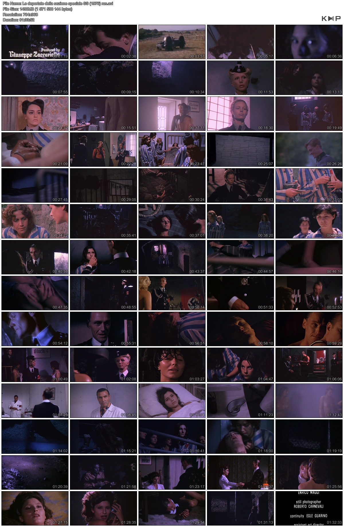 Описание: Один из многочисленных итальянских фильмов жанра sexplication на тему нацистских женских концлагерей. Как и во всех фильмах есть молодая красаивица, попавшая в лагерь, садист начальник, раздевания, изнасилования, подробные сцены сбривания волос и не только на голове, зверские опыты и т.п.