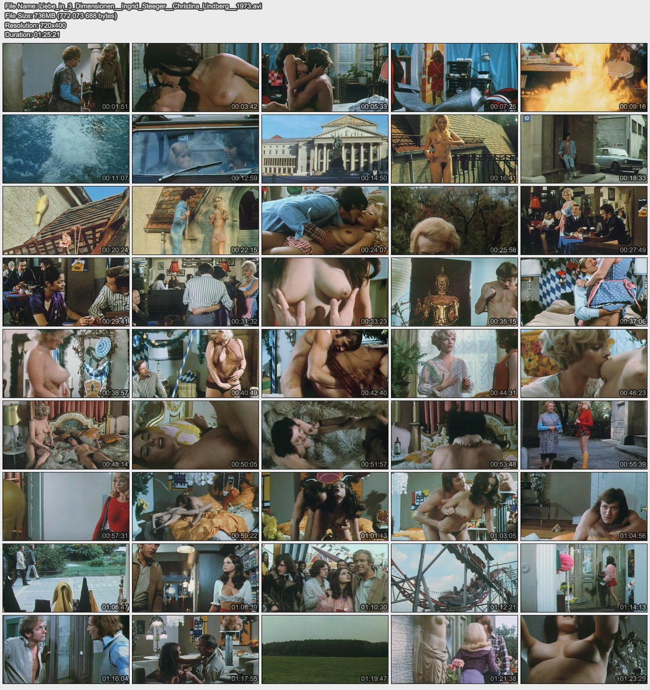 Описание: Presumably inspired by Pete Walker's 4 Dimensions of Greta this is another 1970s sex comedy filmed in 3D. Walter Boos however went all the way - we do not have just the odd 3D boob scene, the whole film is made in 3D. The viewer is constantly reminded of that, because the cinematography is truly bizarre with plenty of scenes of rather peculiar camera angles that strongly emphasize the 3D effects, e.g. a girl on a swing moving towards (and above) the camera, twigs hitting a car window, and many many more. The exaggeration of 3D makes these scenes quite funny, as the effects are completely over the top.