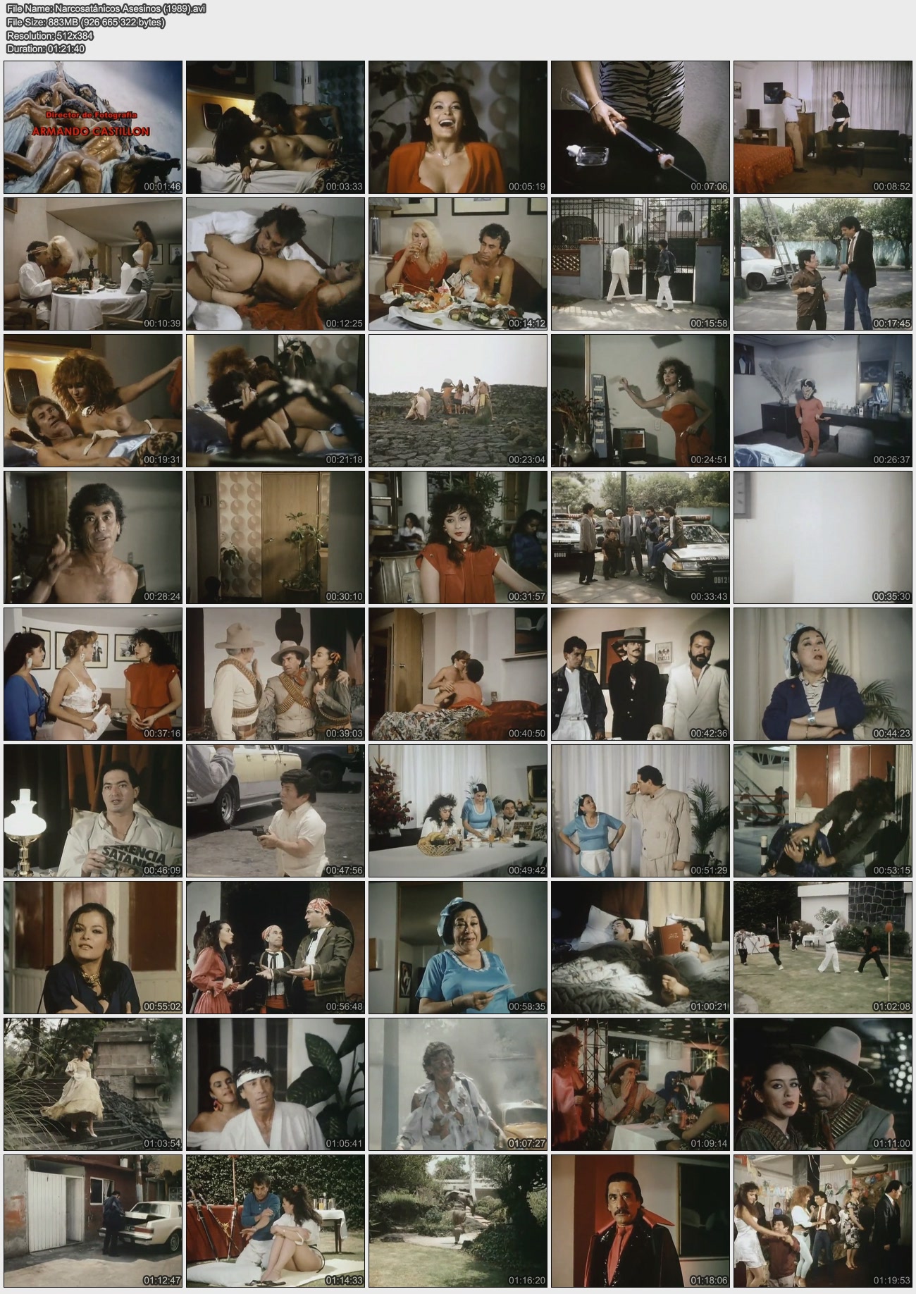 Описание: Narcosatánicos Asesinos (Narco-satanist Assassins) is a Spanish language Mexican bawdy sex comedy film. A satanic force transforms Alfonso Zayas into a 2000 year-old "Supermacho", a gigolo charging $200 for sex. He has a contract with Satan, in which the dark prince gets his soul after a time (at one point the Devil rapes him). Linda Santos is his companion, and has been for all time. He is a coke-head and sex-addict. He eats oysters for virility. Innocent people have to deal with persons with diabolic possessions, bacteriological wars, and social loves (amores sociales). Zayas is frequently injected with blood directly into his buttocks with an oversized needle....