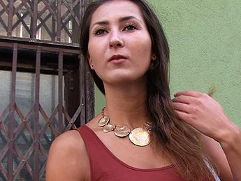 Название ролика: Big tits brunette fucks for cash in public