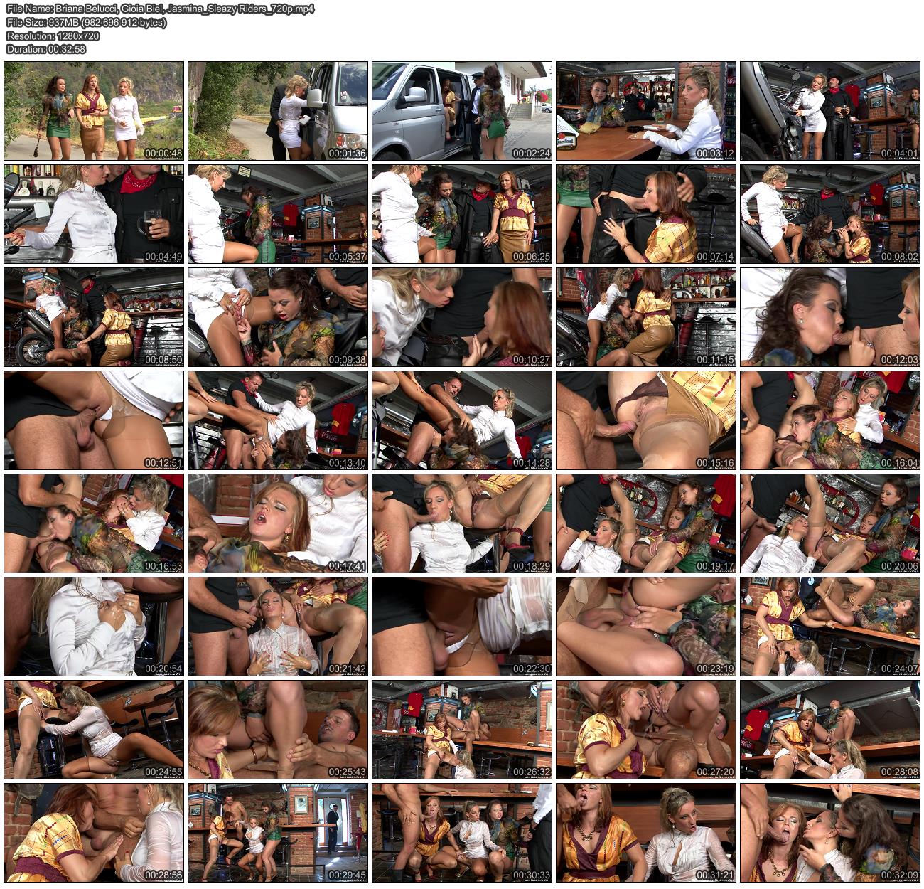 Description: Briana Belucci, Gioia Biel, and Jasmina takea stroll by the river in their brand new fashion outfits. When it looks like a storms about to break out, they quickly call their driver to come get them. Not knowing what to do with their day, they decide to stop into the nearest pub. Which happens to be a biker diver bar, who's only customer is a drunk biker bandito, who seduces the ladies to take a ride...in more ways that one. Next thing you know, a full on piss orgy, where one dudes gets to piss on and fuck three hot-as-fuck babes. It's a piss fetish fan's dream come true, check it!