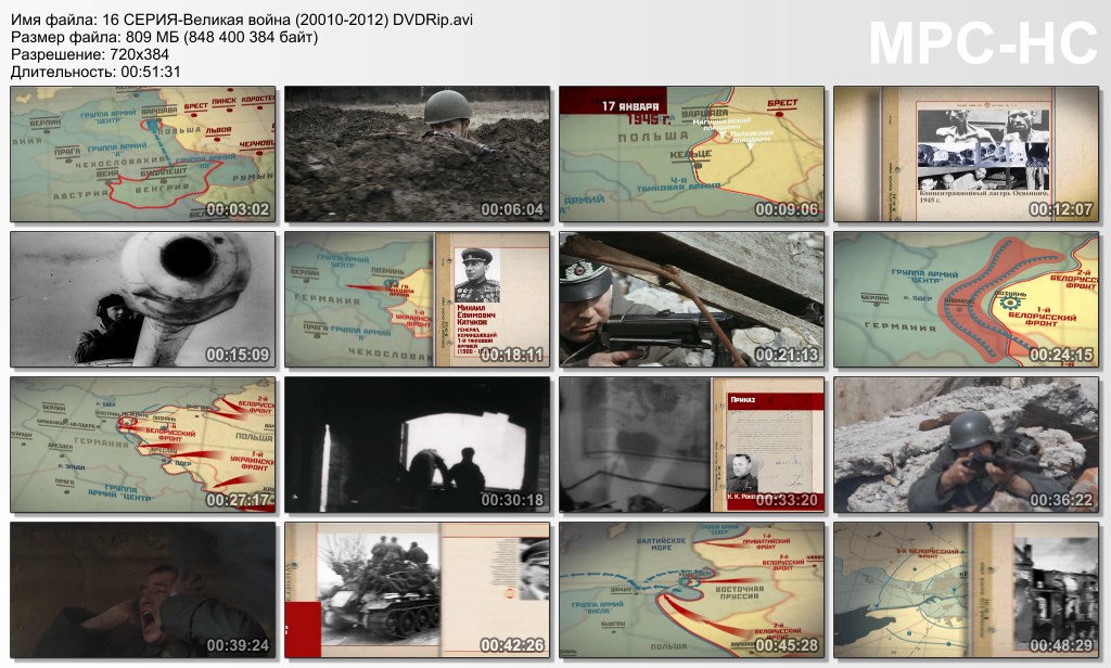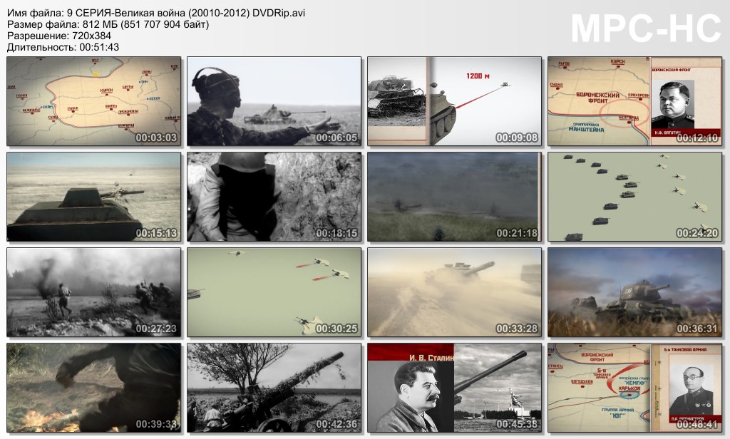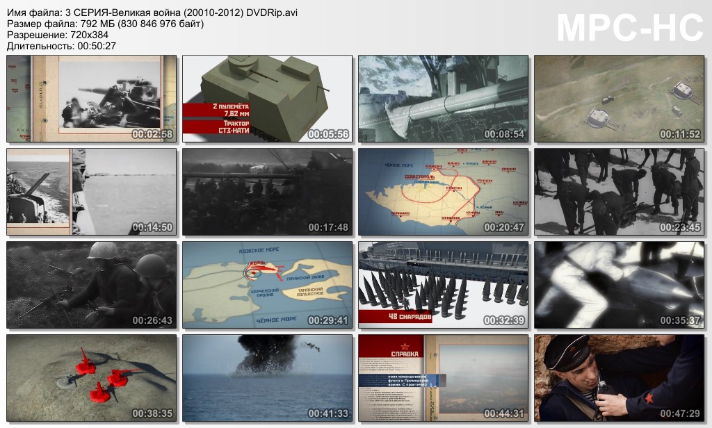 О фильме: Документальный Цикл "ВЕЛИКАЯ ВОЙНА" рассказывает о наиболее значимых событиях и сражениях. Повествование охватывает весь период войны от дня вторжения немецких войск на территорию нашей страны до дня победы 9 мая 1945 года. В фильме подробно рассматриваются причины поражений Красной армии в первые дни войны, стратегические и тактические решения советского командования. Особое внимание уделено техническому оснащению войск, малоизвестным особенностям ведения боев в различные периоды войны тем или иным родом войск. Но самое главное – фильм о том, каким образом Красная армия и советский народ смогли оправиться после поражений 1941-42 годов, выстоять и победить. Цикл "Великая Война" сделан с использованием 3D-анимации, которая в сочетании с кинохроникой позволит воспроизвести масштабность происходивших событий и их драматизм, дать необходимые пояснения, понятные даже неискушенному в вопросах военной истории зрителю. Применение постановочной реконструкции в сочетании со средствами компьютерной графики позволяют восстановить те события, которые не могла зафиксировать кинохроника.