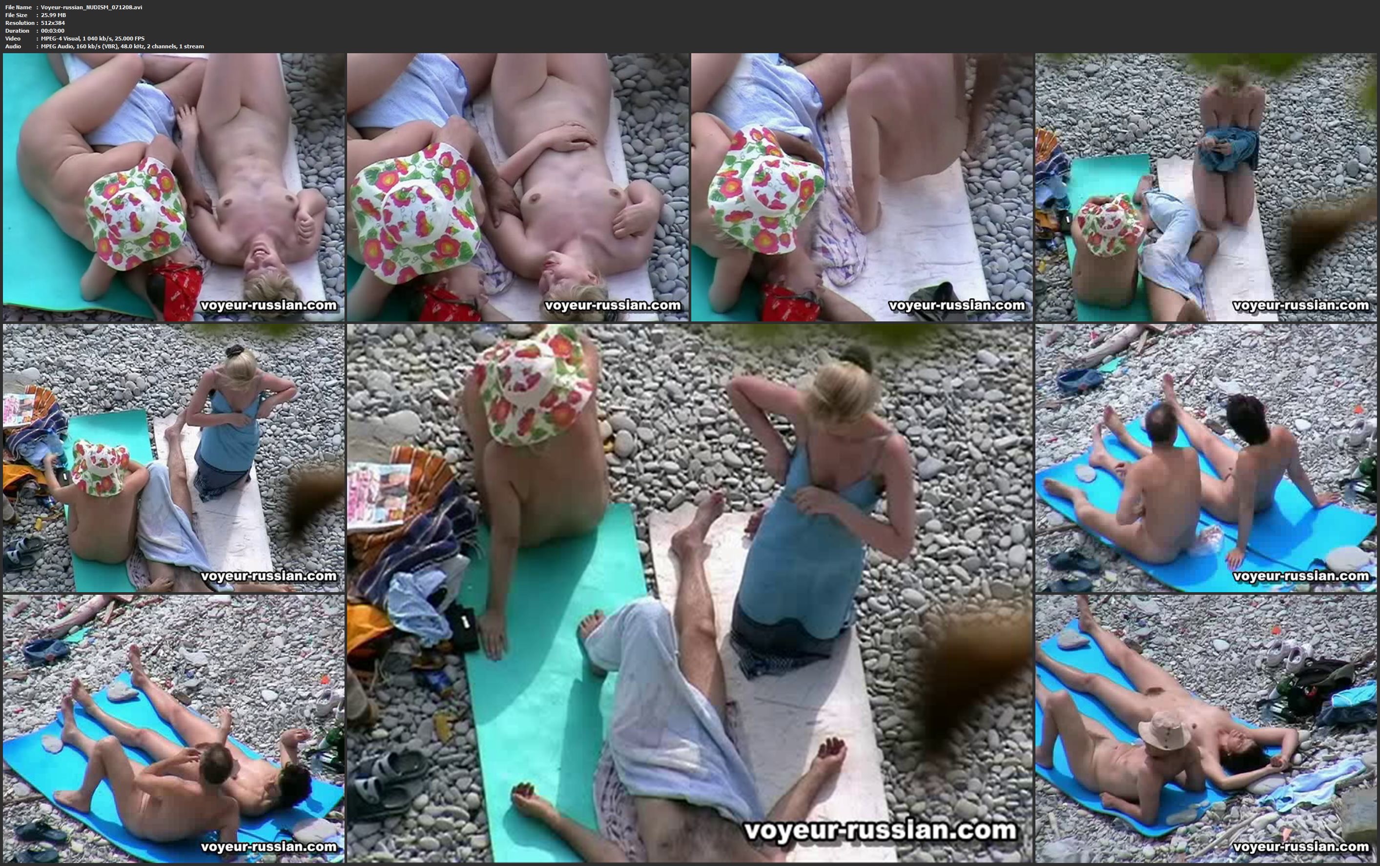 Voyeur-russian_NUDISM_071210 Info:File Name : Voyeur-russian_NUDISM_071210.avi File Size : 25.5 MB Resolution : 512x384 Duration : 00:02:59 Video : MPEG-4 Visual, 1 023 kb/s, 25.000 FPS Audio : MPEG Audio, 160 kb/s (VBR), 48.0 kHz, 2 channels, 1 stream Download Gigapeta.com:  Вам необходимо ЗАРЕГИСТРИРОВАТЬСЯ НА ФОРУМЕ, чтобы скачать файл.