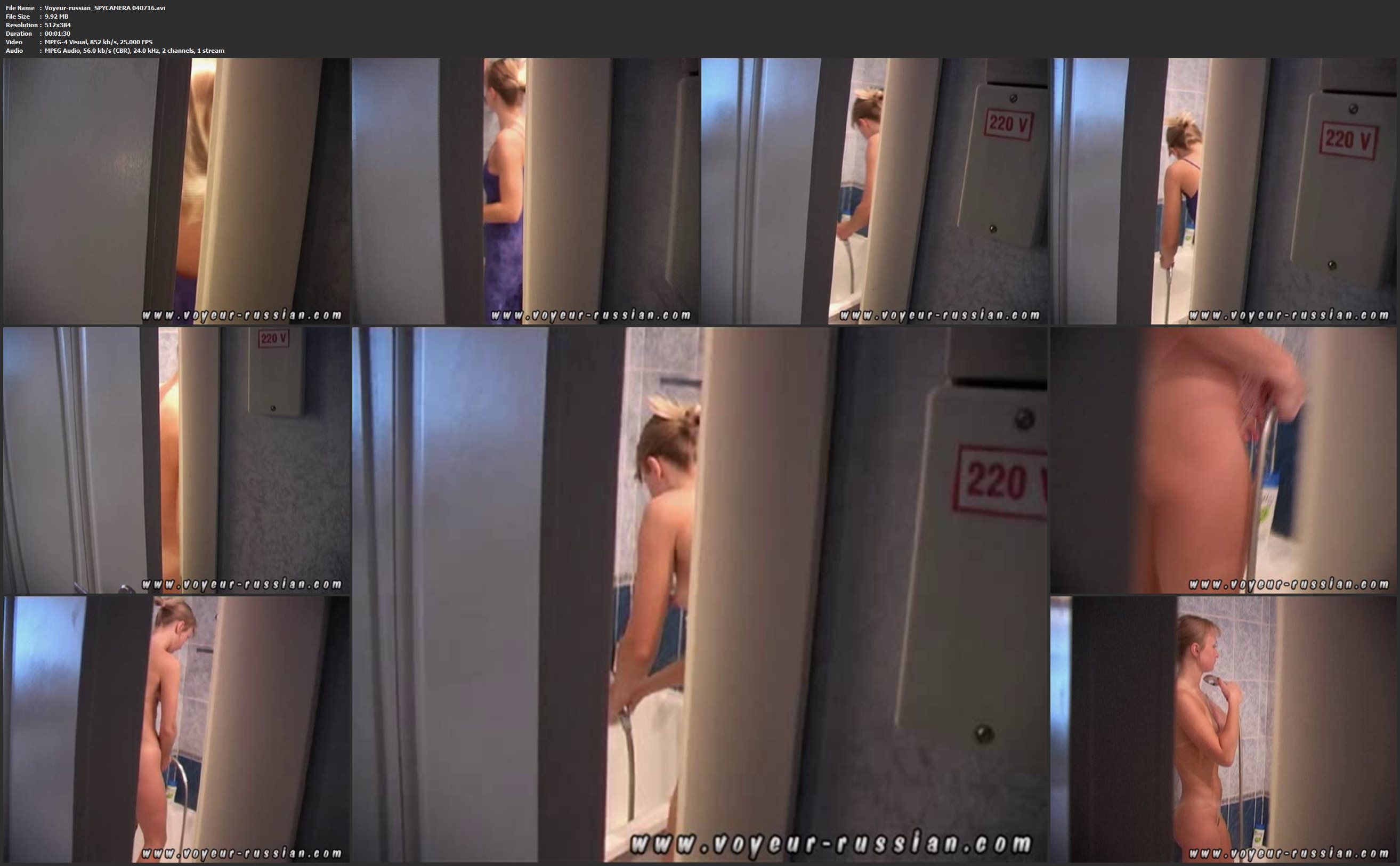Voyeur-russian_SPYCAMERA 040528 Info:File Name : Voyeur-russian_SPYCAMERA 040528.avi File Size : 10.28 MB Resolution : 528x384 Duration : 00:01:21 Video : MPEG-4 Visual, 1 022 kb/s, 25.000 FPS Audio : MPEG Audio, 32.0 kb/s (CBR), 16.0 kHz, 2 channels, 1 stream Download Gigapeta.com:  Вам необходимо ЗАРЕГИСТРИРОВАТЬСЯ НА ФОРУМЕ, чтобы скачать файл.