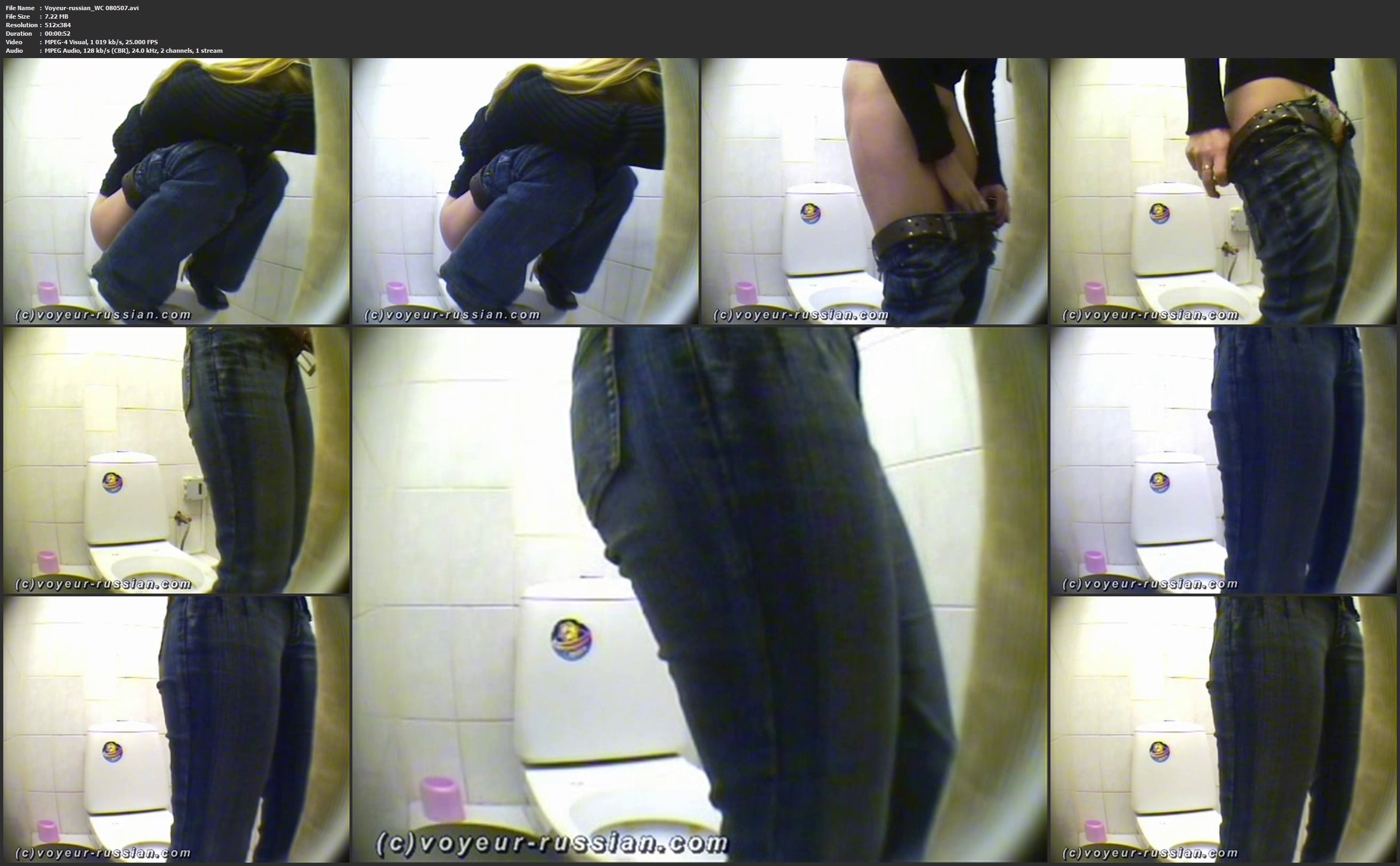 Voyeur-russian_WC 080509 Info:File Name : Voyeur-russian_WC 080509.avi File Size : 6.07 MB Resolution : 512x384 Duration : 00:00:45 Video : MPEG-4 Visual, 1 048 kb/s, 25.000 FPS Audio : MPEG Audio, 56.0 kb/s (CBR), 24.0 kHz, 2 channels, 1 stream Download Gigapeta.com:  Вам необходимо ЗАРЕГИСТРИРОВАТЬСЯ НА ФОРУМЕ, чтобы скачать файл.