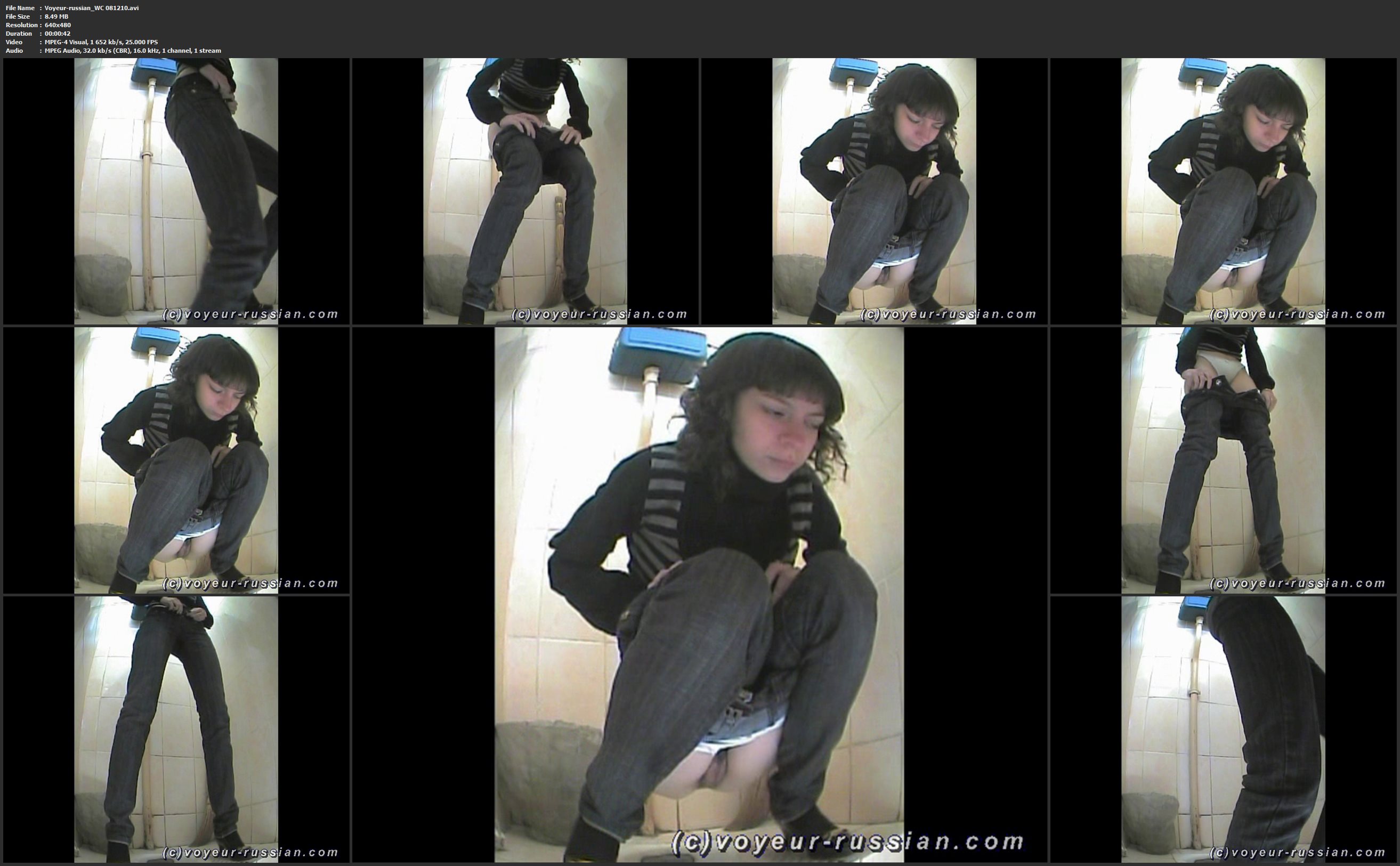 Voyeur-russian_WC 081223 Info:File Name : Voyeur-russian_WC 081223.avi File Size : 29.69 MB Resolution : 640x480 Duration : 00:02:32 Video : MPEG-4 Visual, 1 589 kb/s, 25.000 FPS Audio : MPEG Audio, 32.0 kb/s (CBR), 24.0 kHz, 1 channel, 1 stream Download Gigapeta.com:  Вам необходимо ЗАРЕГИСТРИРОВАТЬСЯ НА ФОРУМЕ, чтобы скачать файл.