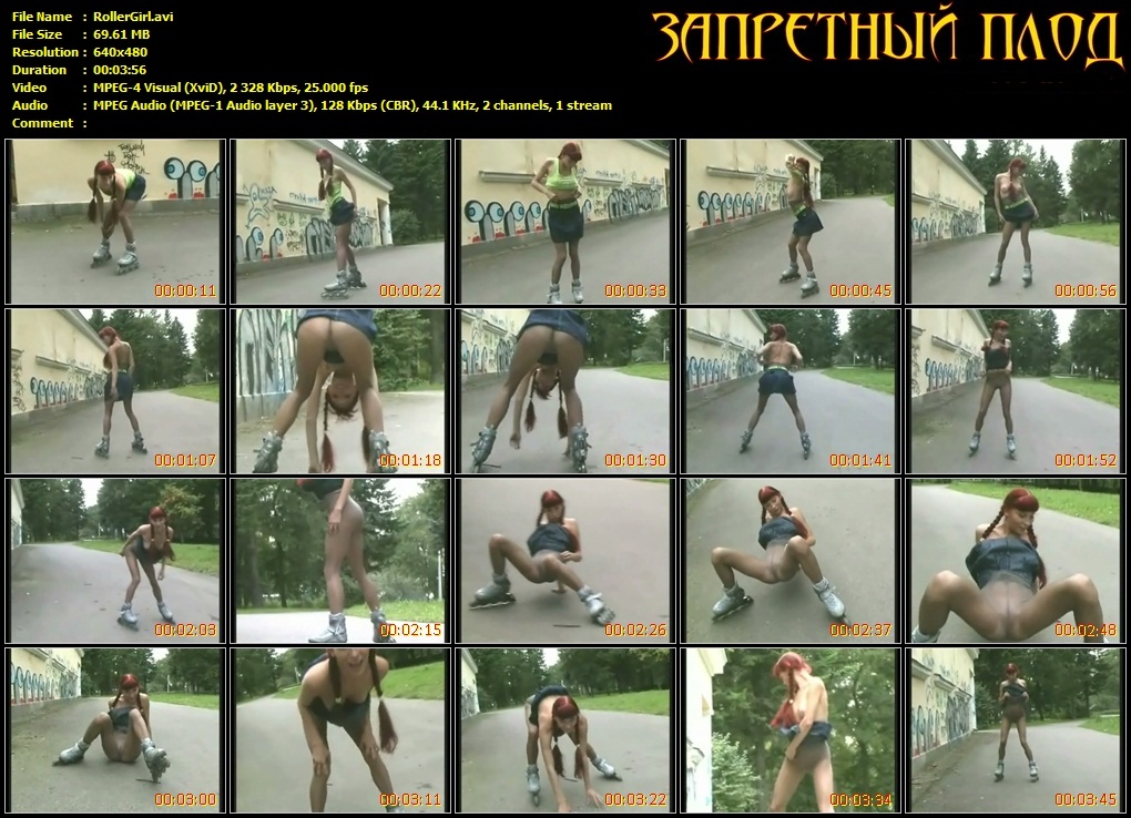Без трусиков на роликахСимпотичная девушка без трусиков в короткой юбке катается на роликах по улице и постепенно раздевается. Имя файла: RollerGirl.avi Формат файла: .avi (AVI) Размер файла: 69,61 MB Длительность: 3mn 56s Размеры изображения: 640 x 480 (4:3) Кликни картинку для увеличения Ссылки на бесплатную загрузку файла: Вам необходимо ЗАРЕГИСТРИРОВАТЬСЯ НА ФОРУМЕ, чтобы скачать файл.