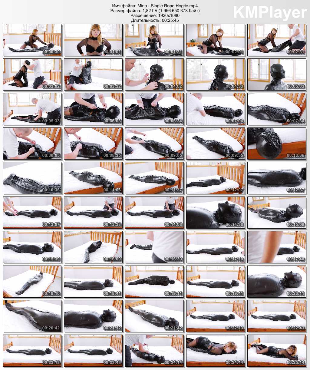 Mina is hogtied using only one piece of rope! I wanted to see if I could do a clean and tight hogtie using only one piece and it was really very easy! Who says you need loads of rope 🙂 Watch Mina get restrained into a pretty brutal and tight position, elbows bound tight, head pulled back and secured to her elbow ropes, a tight and unforgiving arch.