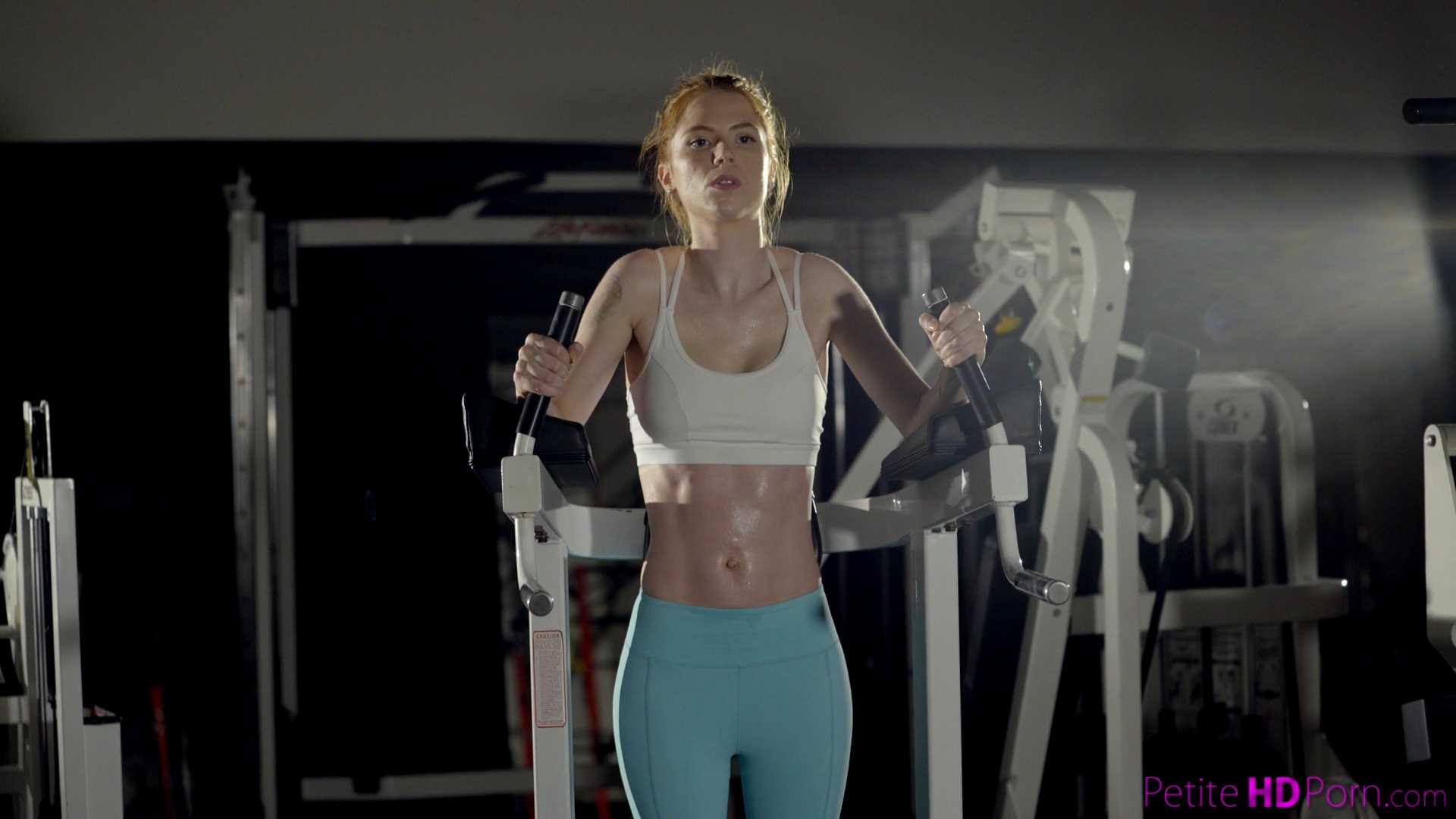 Pepper hart is feeling strong and sexy as this athletic coed works out in the gym. Dressed in a shirt and leggings that cling to her tight body, the petite redhead goes through her routine. As she's finishing up and at her absolute horniest, her gym partner and fuck buddy Kyle Mason arrives. Pepper wastes no time in springing Kyle's hardon free of his pants so she can wrap her soft lifts around his stiffie and start sucking! Kyle can't keep his eyes off Pepper as she gets to her feet and strips slowly for his pleasure. As she reveals her fair-skinned body, Kyle gets comfortable on the workout bench so his hot redhead can mount his stiffie and go to town. Her hips wiggle and shake as her trimmed twat takes in every inch of her fuck buddy's hardon in a truly satisfying fuck. Hopping off Kyle's dick, Pepper gets on her hands and knees and shakes that beautiful rump of hers in an enticing invitation. Kyle isn't shy about slamming into Pepper's warm wetness a s he grips her heart-shaped big ass to anchor himself for the fast and furious coupling. Once he starts, Kyle won't stop his hips from thrusting until Pepper has climaxed and he has given her the cum creampie they both crave.