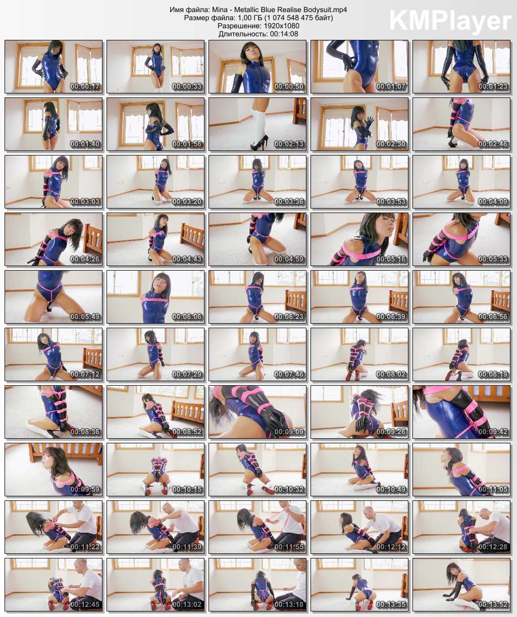 Описание: У Мины есть совершенно новый набор реалистичных купальников! До сих пор у нас всего шесть, еще много запланированных, эти вещи - фетиш-мечта! Трудный, Блестящий, Сексуальный, я говорил жестко? Мина добавляет новый металлический синий гидра-костюм, белые носки с высоким коленом, черные каблуки, черные латексные перчатки, и она хорошо освещена детским маслом. Она показывает свой новый костюм на камеру и проводит немного времени в каком-то узком локтевом рабстве и тугой веревке. Мы просто любим эти продукты Realise!