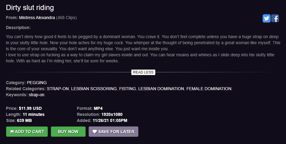 Автор | Тема: Clips4Sale.com - Mistress Alexandra - Dirty slut riding (26.11.2021/1080p). (Прочитано 332 раз) |