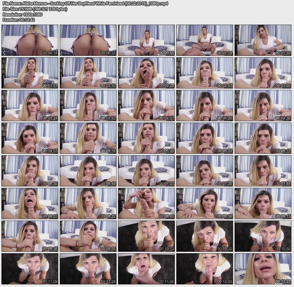 Описание: Alisha Monroe is so happy that you are her man. When she is fully feminized, this beautiful blonde latina has the looks and the skills to make any man orgasm. She strokes and sucks his big dick and loves every second of it. Finally she takes all your sperm in her mouth and swallows it down