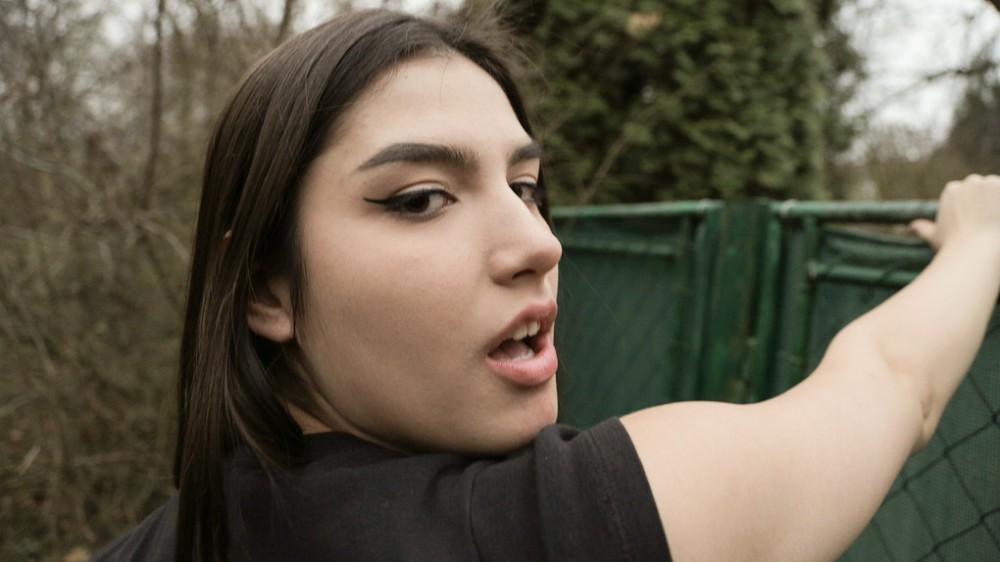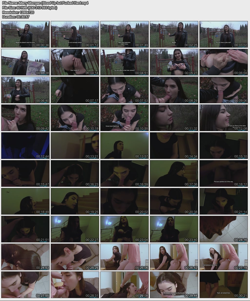 I saw Marry Morrgan standing in the field, so I approached and asked to chat with her. Marry told me she had been waiting for over an hour, and that the gate she stood in front of was to her boyfriend's house. He had stood her up! I couldn't believe someone could stand up such a beautiful woman with natural, big boobs. I offered her 2000 CZK to flash me her ass, and she did so immediately. After she showed me her boobs, I paid her more to suck my dick. That's when we had the best idea, we could sneak into his house and fuck in front of his door, and that's exactly what we did!