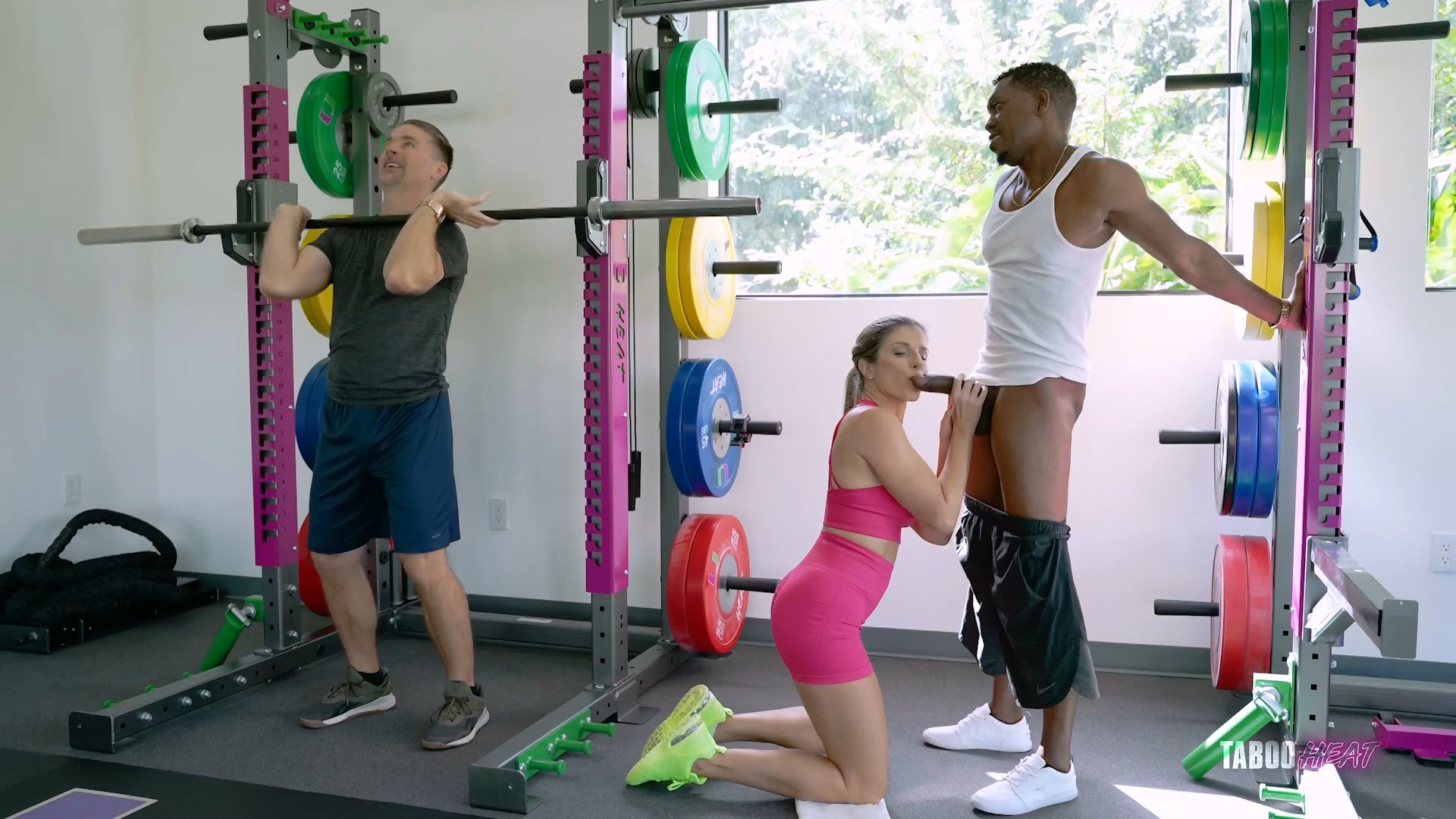 Luke and Jonathon are working out in the gym this afternoon, chatting about their step families. They are hinting about a future step daughter swap, when Cory walks in the gym and straight towards Jonathon. She heard that Jonathon needed some stress relief, so she instantly gets down on her knees and starts to suck his BBC! They walk over to a bench, away from the heavy equipment, and the two men strip Cory naked. She starts to give Luke a blowjob while Jonathon fucks her from behind. The two men switch places for a moment, before they both are ready to D.P her. Cory hops on top of Jonathon and Luke gets behind her, so the two men can penetrate Cory at the same time. Cory lies down on her back and Jonathon fucks Cory's ass with his huge BBC, while Luke feels Cory's tits. Jonathon continues fucking Cory's ass while Cory gives Luke a blowjob. Next, Luke lies down and Cory sits on Luke's cock while Jonathon fucks Cory's ass at the same time. Cory hops on top of Jonathon and she starts to ride his cock with her ass. While she is riding Jonathon, Luke starts to fuck her pussy simultaneously. The two men keep fucking both of her holes at the same time, and Cory seems to love every minute of it! Luke is ready to cum first, so he has Cory get down on her knees and open her mouth wide. He jerks his cock off into her mouth and she swallows it all! Jonathan is ready next Cory starts to jerk his cock off while giving him a blowjob. She keeps sucking and jerking him, until he explodes in her mouth and on her face! She swallows all of his cum as well!