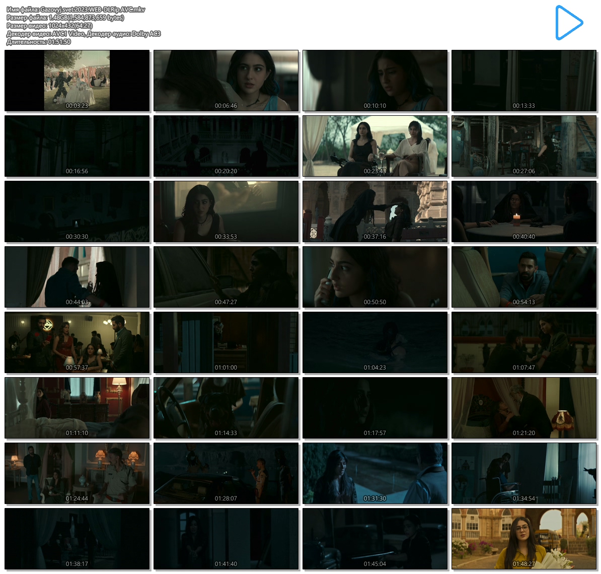 Аудио 2:48 kHz, AC3 Dolby Digital, 3/2 (L,C,R,l,r) + LFE ch, ~384 kbps | Хинди