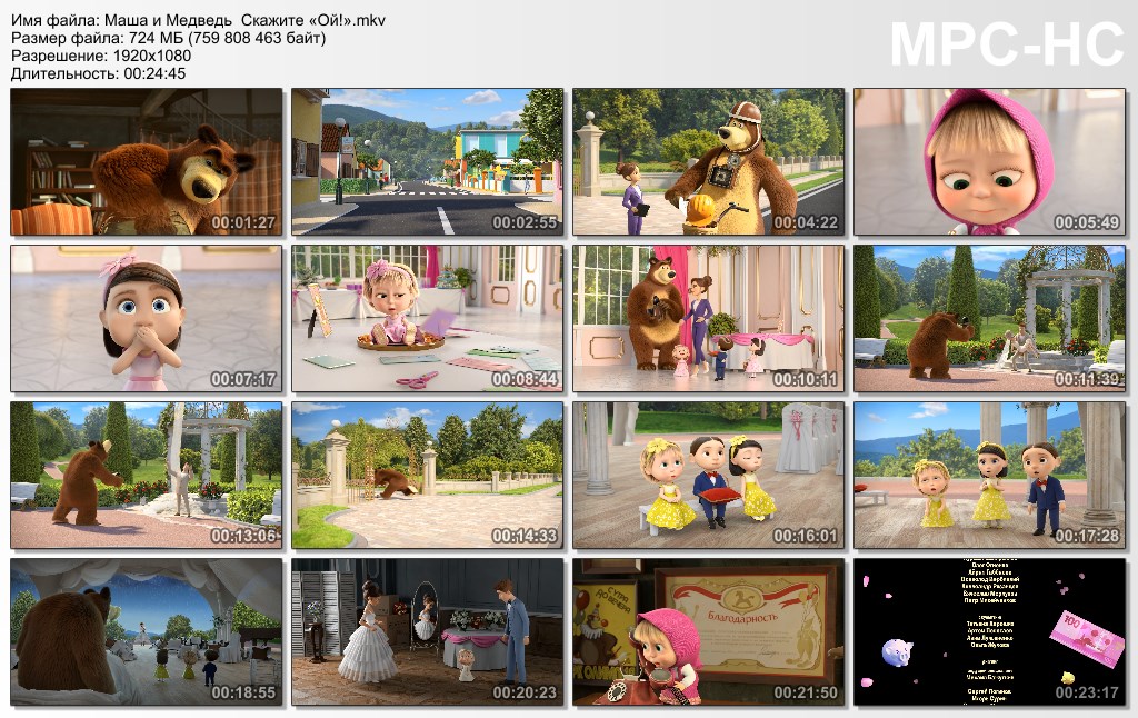 Информация о фильме: Оригинальное название фильма:Маша и Медведь в кино: Скажите «Ой!»