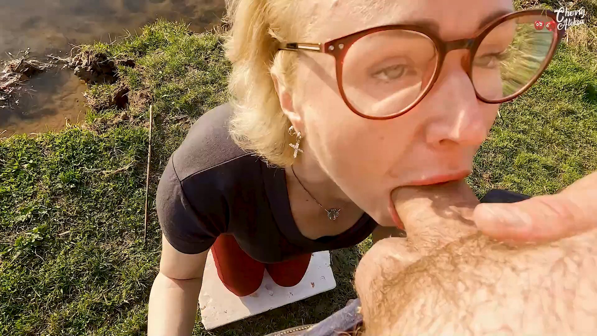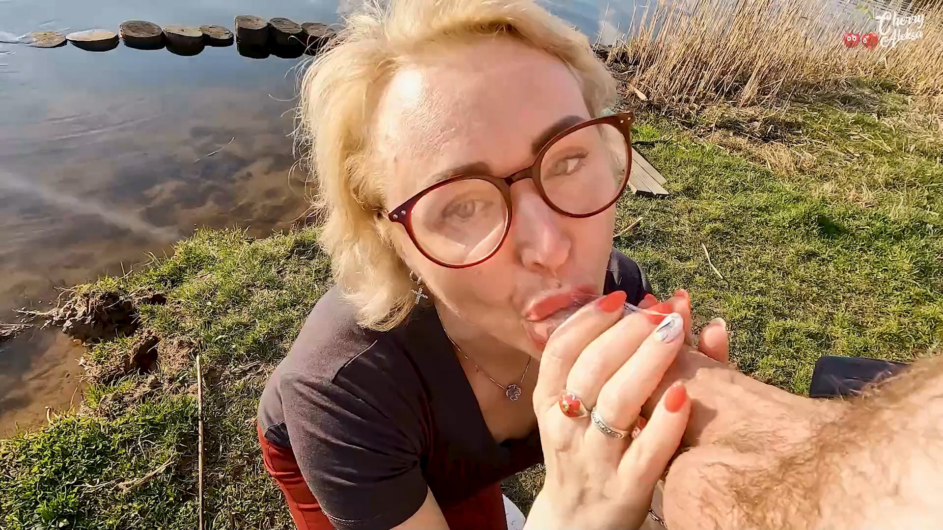 Оригинальное название ролика:  Cherry Aleksa met her admirer at the lake and sucked him off  //