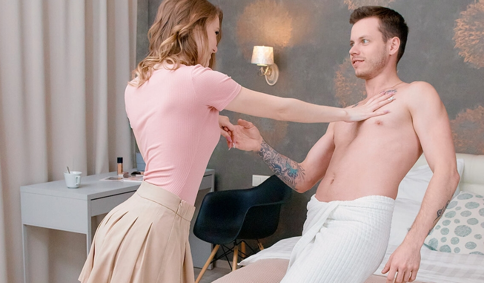He walks out of the bathroom and tells the hottie it is time for him to go and meet another girl. Sure, Escaped