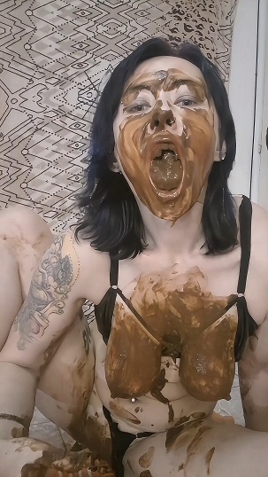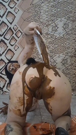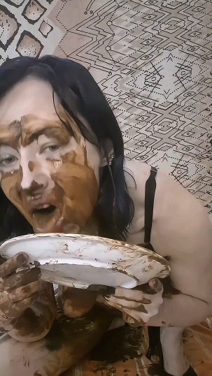 Listen to the kinky sounds while I rub my wet and smeared asshole, licking the shit from a plate with my painted tongue.