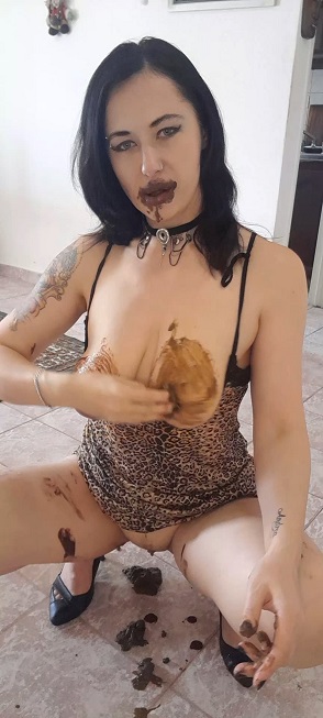 Описание: I wore a sexy leopard dress and heels waiting for my shit, meanwhile was eating my favourite chocolate desert, smearing my nipples with creamy chocolate in erotic way.
