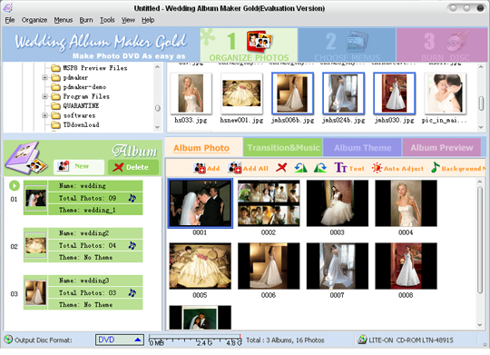 Wedding Album Maker Gold – это профессиональная программа для создания фотоальбома, которая создает впечатляющее слайд шоу из свадебных фотографий с музыкой, переходами и DVD меню. Данная программа позволяет быстро и легко создавать впечатляющие свадебные альбомы на DVD видео дисках.