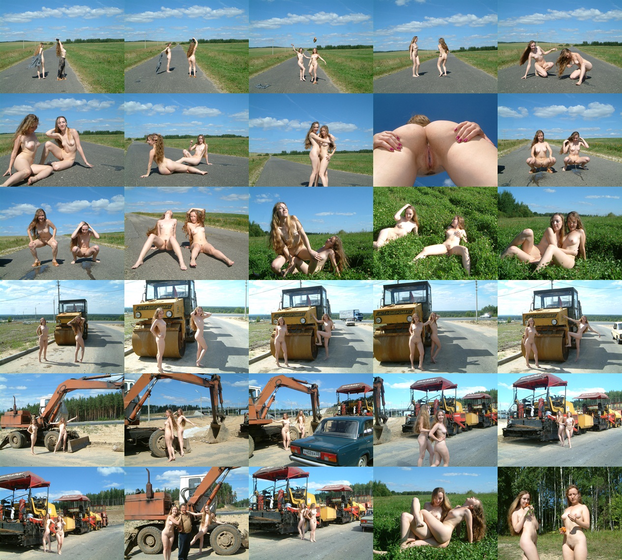 Две русские телочки зажигают на автотрассе и  зеленом лугу