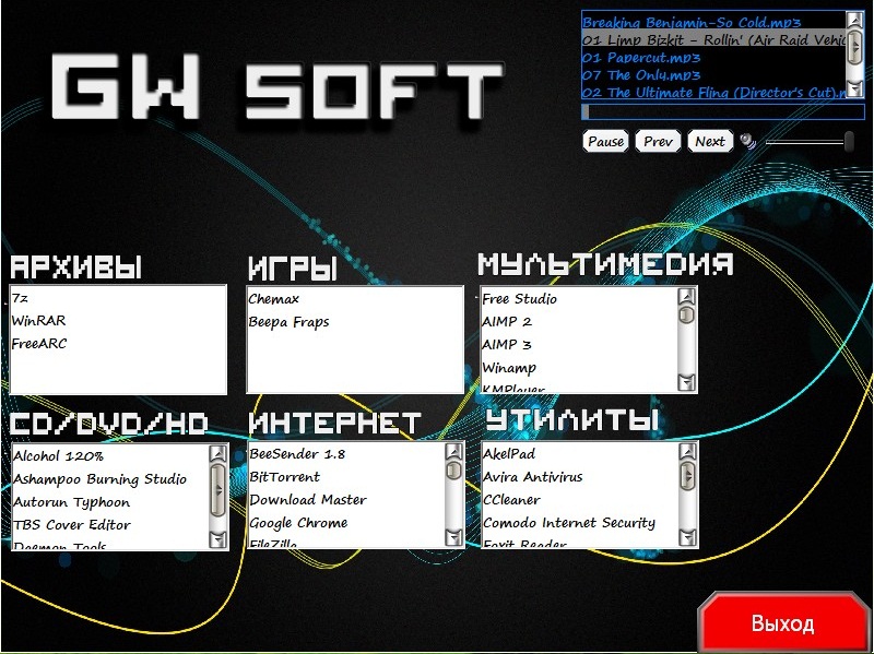 GW Soft включает в себя только новые (программы на выход сборки были актуальны) и лучшие программулины на все случаи жизни!