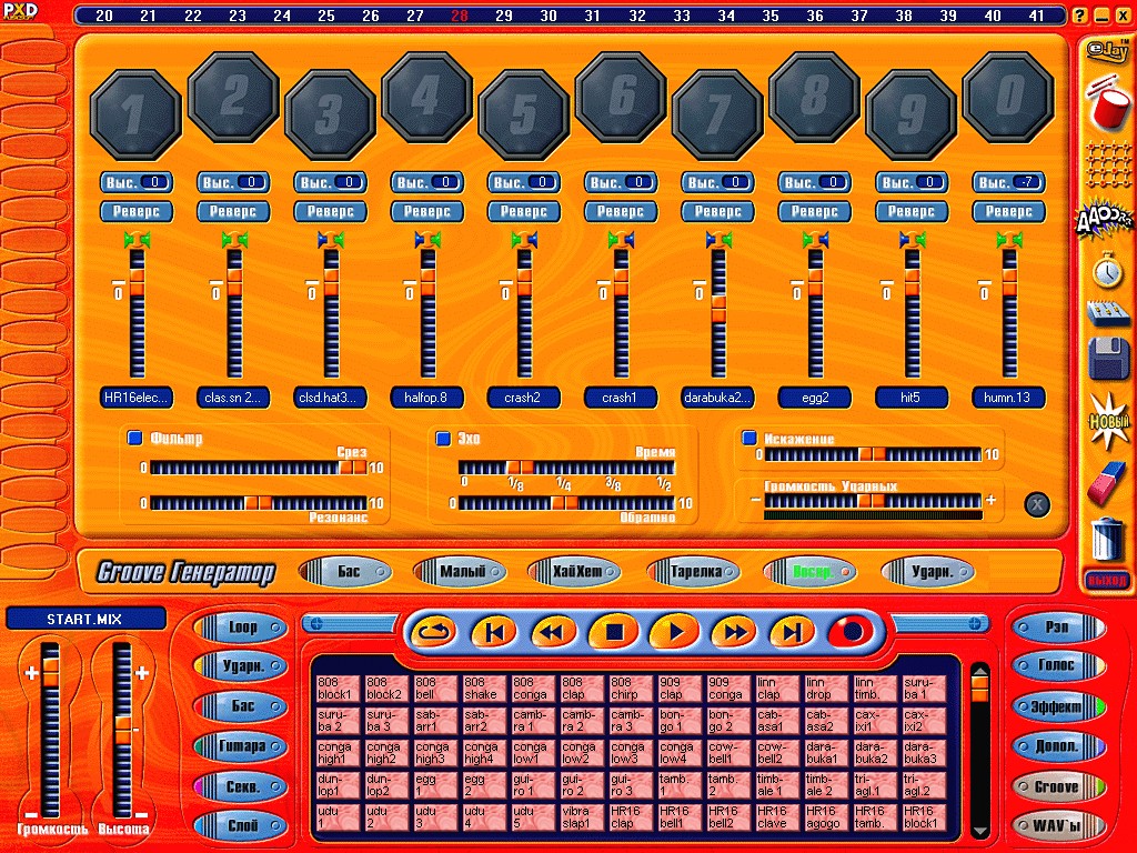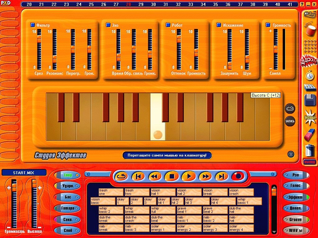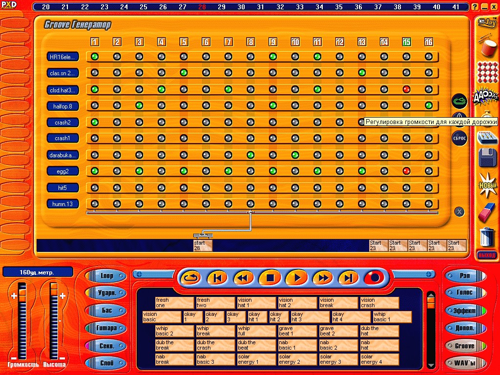 Описание: Программа для создания своих музыкальных композиций, Effect Studio и Groove Generator помогают вам создать на любой ваш вкус мелодию, более 500 ударных звуков и многое другое.
