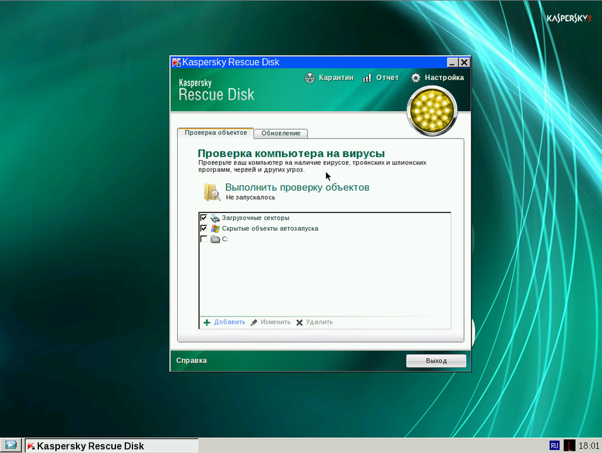 Kaspersky Rescue Disk дозволяет наиболее отлично управляться с вирусами, так как данный диск не просит загрузки Windows, а следовательно вредные программы будут бездельничать.