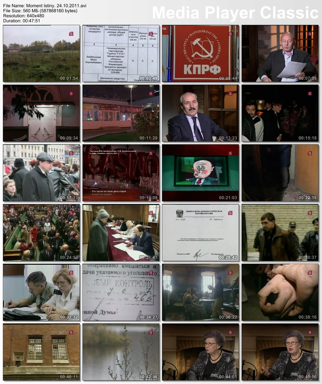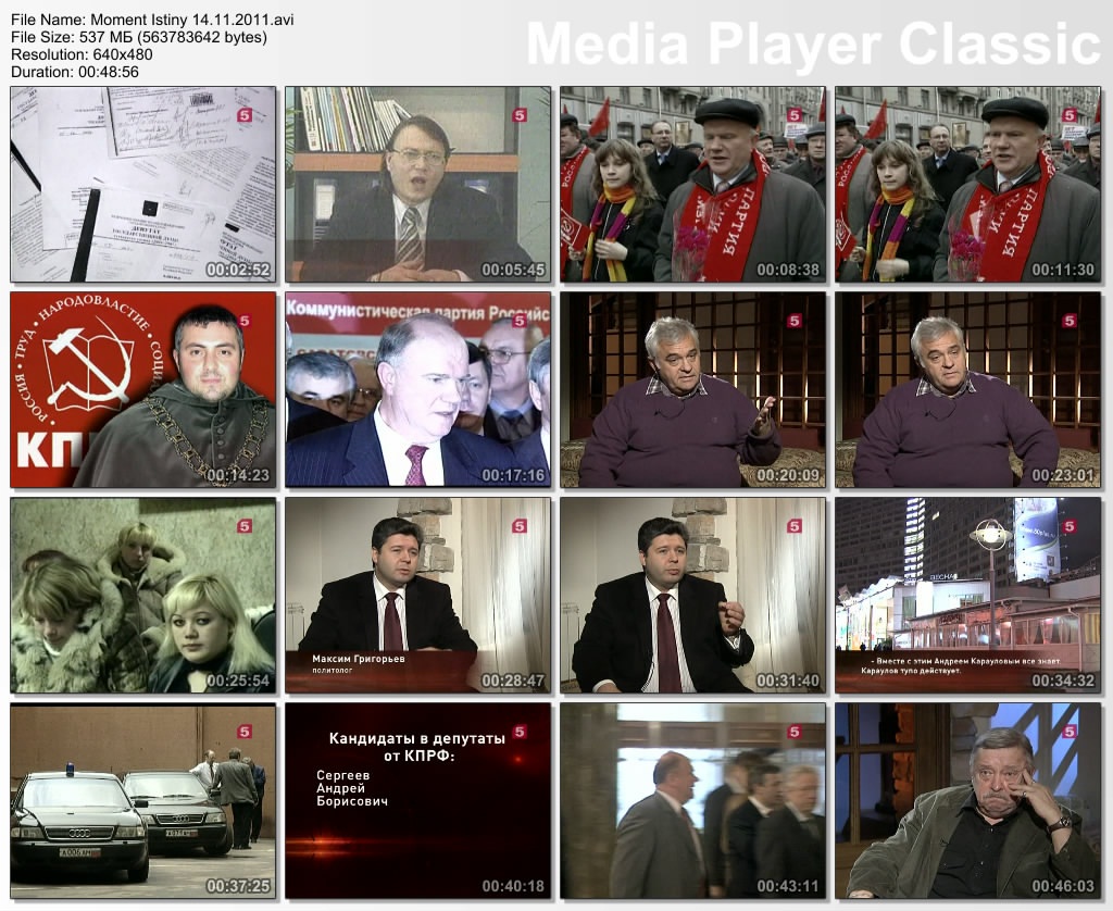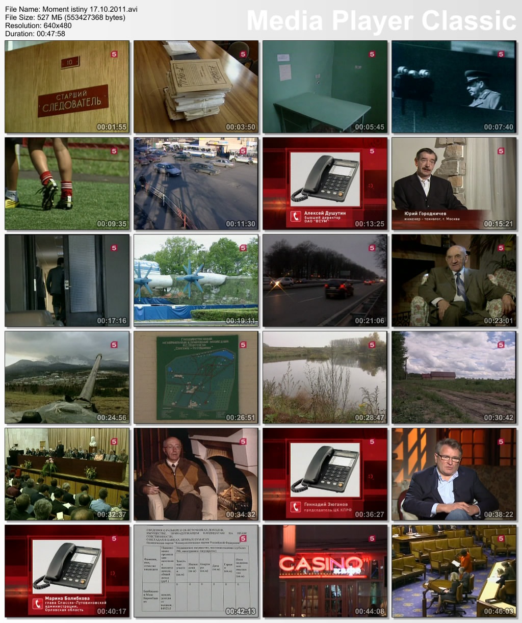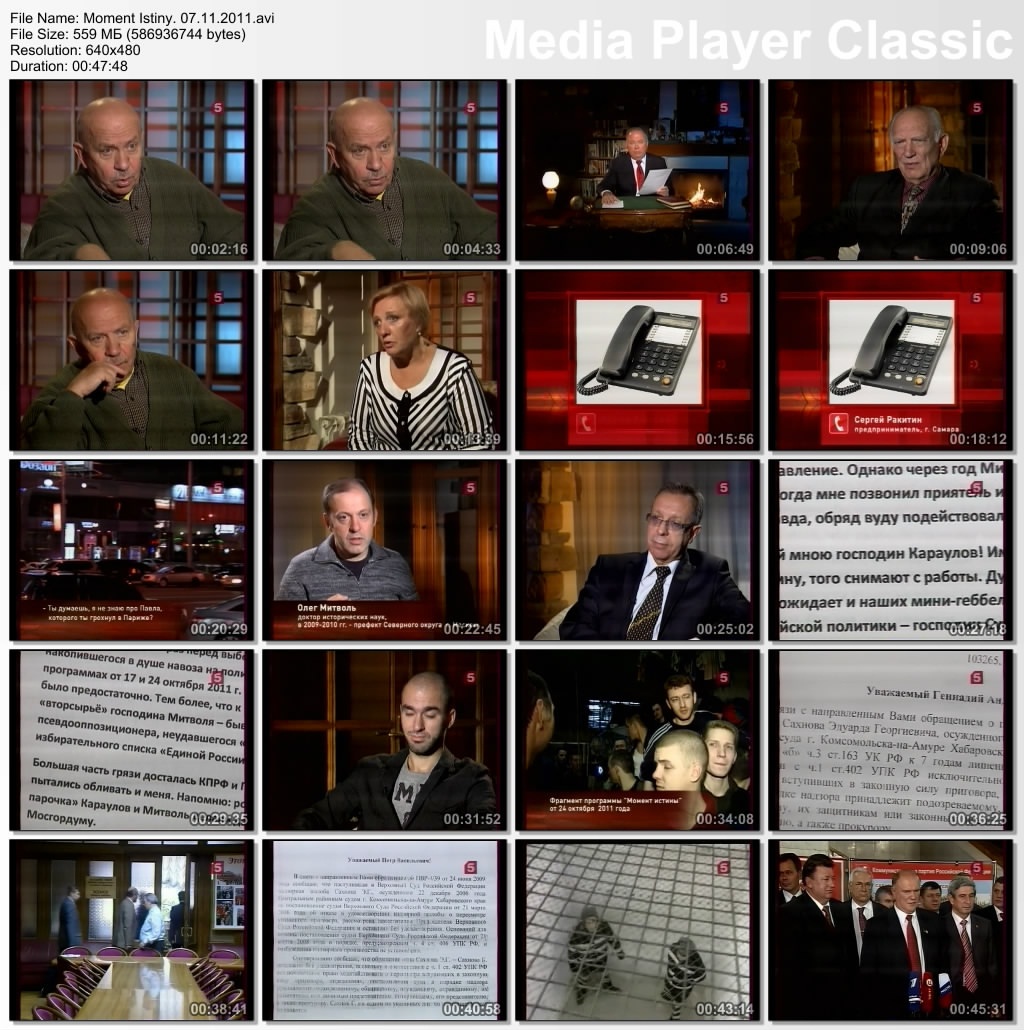 Информация о фильме:Название: Момент истины Год выпуска: 2011 Выпущено: Россия, Пятый канал Жанр: Документальный, Информационно-аналитическая программа Перевод: Не требуется Ведущий: Андрей Караулов В ролях: Андрей Караулов и другие Описание:«Момент истины» - авторская программа журналиста Андрея Караулова, в которой известные писатели, артисты и другие деятели культуры и политики обсуждают злободневные для России темы: коррупция в высших эшелонах власти, вырождение нации, наркомания среди молодежи, падение рождаемости и др. Информация о файле:Формат: AVI Видео: XviD, 640x480 (1.33:1), 25 fps, ~1151 kbps avg, 0.15 bit/pixel Аудио: MP3, stereo, 2 ch, 44.1 kHz, ~128.00 kbps avg Качество: SATRip Выпуск от 20.06.2011.Михаил Ходорковский. Банк Менатеп. История с захватом дома в Колпачном переулке (Москва) Убийство мэра г. Нефтеюганск - Петухова в 1998 году. Кому это было выгодно «Юганскнефтегаз» был рейдерски захвачен компанией под управлением М. Ходорковского «ЮКОС» Выживший во время убийства мэра г. Нефтеюганск - юрист местной администрации, оставшийся инвалидом, не признан потерпевшим Перехваченый телефонный разговор Леонида Невзлина (правая рука Ходорковского, обвинененный в убийстве и скрывающийся за границей) и Алексея Кондаурова (бывший менеджер компании «ЮКОС». Генерал-майор ФСБ в отставке. депутат ГосуДумы, член фракции КПРФ) Исчезновение супругов Гориных из Тамбова, имевших отношение к "Банде Пичугина" Открытое письмо Михаила Ходорковского о фактах изложенных в д/ф "Ходорковский. Тру(б)пы" Продолжительность: 00:47:25 Размер: 437 МБ Скачать: Вам необходимо ЗАРЕГИСТРИРОВАТЬСЯ НА ФОРУМЕ, чтобы скачать файл.