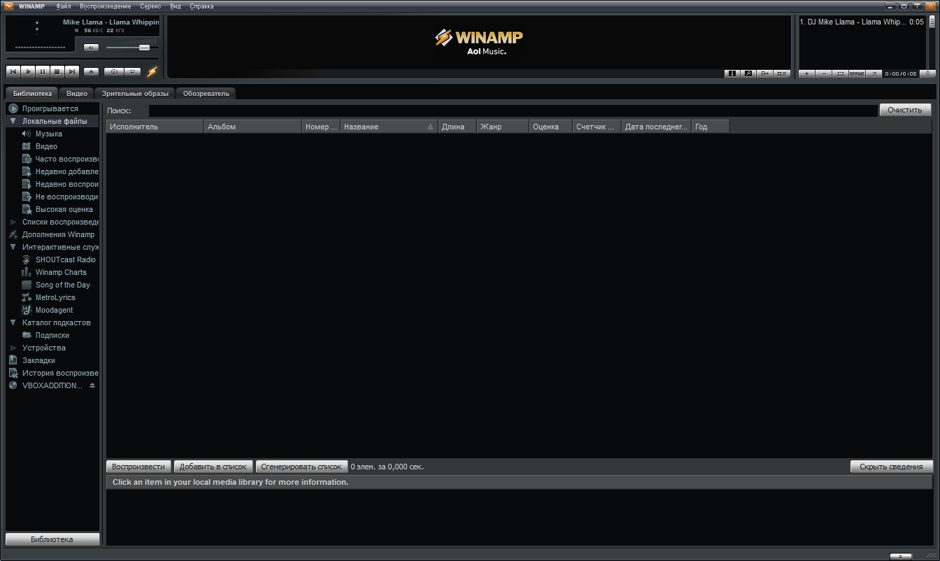 Описание: Winamp Pro - один из старейших и популярнейших медиа-плееров. Программа позволяет работать с файлами в форматах MP3, OGG, AAC, WAV, MOD, XM, S3M, IT, MIDI и т.д., поддерживает воспроизведение видео (AVI, ASF, MPEG, NSV), имеет большое количество настроек и параметров, обладает возможностью смены скинов, имеет хороший модуль визуализации, медиа-библиотеку и многое другое!