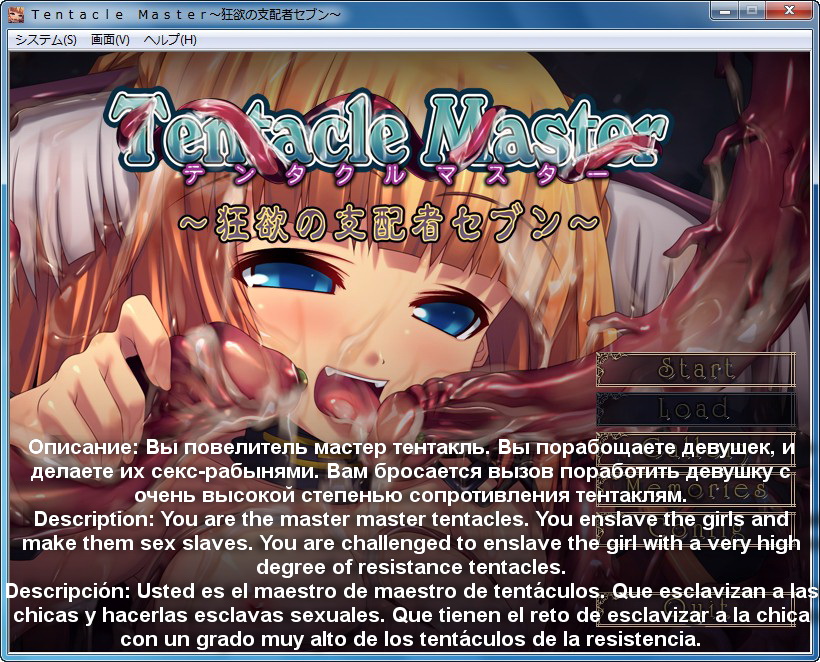 Descripcion: Usted es el maestro de maestro de tentaculos. Que esclavizan a las chicas y hacerlas esclavas sexuales. Que tienen el reto de esclavizar a la chica con un grado muy alto de los tentaculos de la resistencia.
