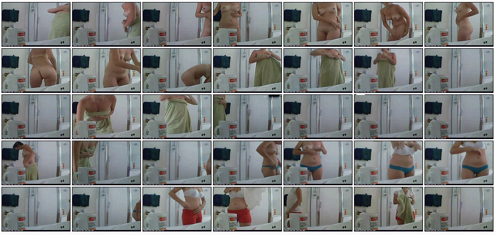 Установленная скрытая камера четко засняла как девушка после душа вытирается полотенцем и переодевается. Удачно можно рассмотреть как из влагалища торчит веревочка и многое другое по мелочи.