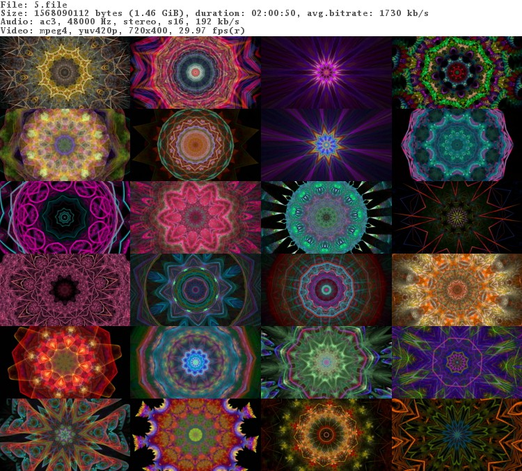 Отдохните от суеты и спешки ежедневной жизни и насладитесь в течении целых двух часов восхитительным, постоянно меняющимся фрактальным калейдоскопом. Подарите вашим глазам яркие и насыщенные краски, расслабляясь и радуясь движению узоров и цветовых комбинаций, медленно вращающихся в завораживающем танце света.