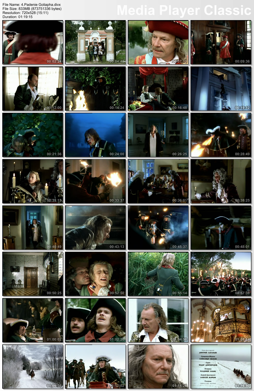 Тайны дворцовых переворотов. Россия, век XVIII-ый. Фильм 4. Падение Голиафа (2001) DVDRip Жанр: Исторический, Приключения, Драма Год: 2001 Страна: Россия Режиссер: Светлана Дружинина Актеры: Наталья Егорова, Сергей Шакуров, Николай Караченцов, Людмила Зайцева, Лариса Лужина, Александр Потапов, Алексей Жарков, Александр Лазарев-мл, Нина Русланова, Дмитрий Харатьян, Владимир Ильин, Наталья Фатеева, Георгий Мартынюк, Владлен Давыдов, Александр Белявский, Юрий Кузьменков, Геннадий Юхтин, Ирина Лачина, Михаил Мамаев, Александр Песков, Вячеслав Гришечкин, Михаил Солодко, Виктор Вержбицкий Описание:Фильм 4-й. Падение Голиафа И началась невидимая битва! Действовать надо было стремительно! Меньшиков пытается вырвать Петра II из лап заговорщиков, но те под носом агентов князя устраивают императору побег.Погоня! Меньшиков преследует похитителей!.. Помня, что в гневе Меньшиков страшен - головы стрельцам собственноручно рубил! - заговорщики торопят Петра II подписать заранее подготовленные бумаги и, захватив их, скрываются вместе с царем. Стремительная развязка затянувшейся на несколько лет интриги заканчивается арестом и ссылкой в Сибирь некогда всесильного и могущественного властелина. Доп.информация:Продолжительность: 80 мин Перевод: Оригинальный русский Качество: DVDRip Формат: MPEG Размер: 833.27 Mb Дополнительные характеристики:Видео: DivX, 704х528, 23.98fps, 739Kbps Аудио: MPEG Audio Layer 3 44100Hz stereo 128Kbps  Вам необходимо ЗАРЕГИСТРИРОВАТЬСЯ НА ФОРУМЕ, чтобы скачать файл.