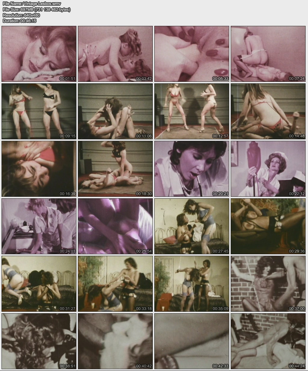 Описание: We all love sexy girls and if we're not fucking them, we want them to fuck each other! Hold onto your cocks and watch these pussies heat up. There are 5 scenes that range in variety. You've got lesbian sex at a massage parlor, a wrestling match, three nurses giving a resistant patient an Enema, an all out cat fight, and a bondage scene where a lesbian dominatrix gets off watching her straight slave get the hell fucked out of her by a masked black man, so she decides to take some dick at the end!