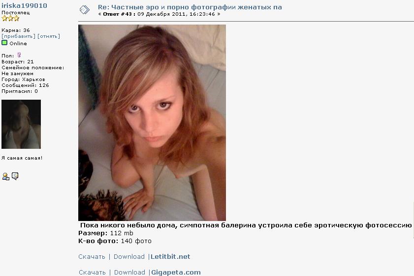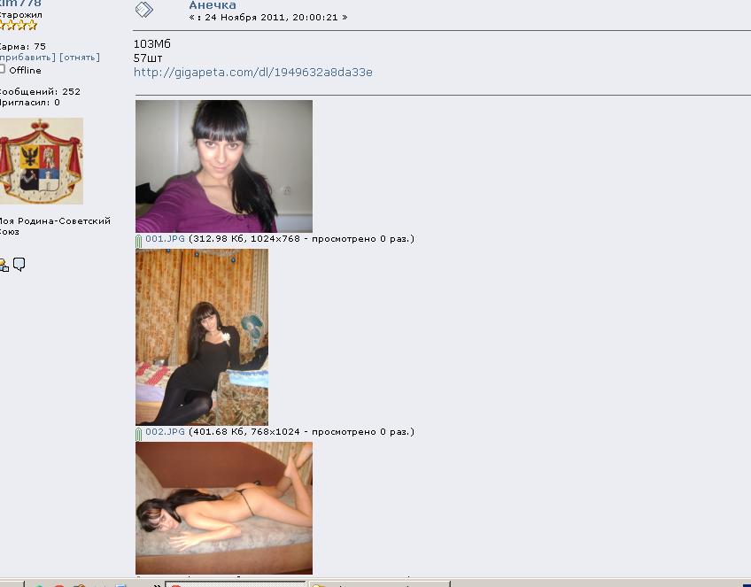 И ты сама в названиях фоток в архиве давала название сайта, откуда они скачаны были? (в своем архиве я их на цифры все поменял). К стати, Ириска, специально твои посты я нигде и никогда не копировал и не постил потом на других сайтах, а вот ты этим занималась. Очень много твоих постов и здесь и на других сайтах я видел с моими материалами, теми, которые я лично стягивал с компов (т.е., для примера могу добавить и те материалы, которых нигде нет). И если я у кого-то по третьему или четвертому кругу их нашел и тебя это так возмутило, то прошу прощения и прошу модераторов удалить данный пост. Только к тебе Ириска теперь у меня тоже будет много вопросов на счет моих материалов. Я тебе буду даже специально скрины делать со временем и датой размещения моих постов, а потом твоих