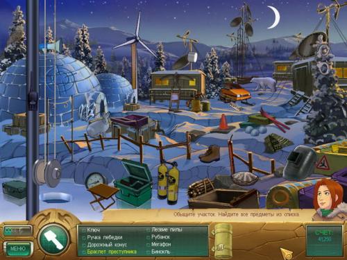 Ваша первая стоянка — в заброшенном эскимосском поселении. Тут столько всего интересного! Загляните в список предметов, которые нужно отыскать в первую очередь. Не все они лежат на виду. Особо ценные предметы спрятаны от чужих глаз. Каждый раз, когда рядом с курсором появляются движущиеся шестеренки, это значит, что внутри предмета, на который указывает курсор, есть нечто любопытное для археолога... Чтобы достать желанную находку, воспользуйтесь уже найденными предметами: спичками, пилой, ключом или... феном? В Заполярье может пригодиться все!