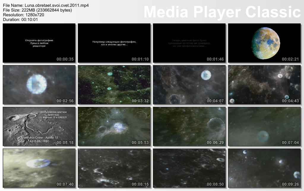 В данном фильме Вы очень быстро убедитесь в том, что Луна на самом деле цветная, а не чёрно-белая, как нас пытались долгое время убеждать и скрывали от общественности этот неоспоримый факт, умышленно переделывая снимки Луны, сделанные в космосе вблизи Луны, в чёрно-белые. Даже сейчас например в очень известной интернет-библиотеке - Википедии размещена фотография Луны, которая полностью обесцвечена. Почему так важно знать, что Луна цветная - смотрите в этом фильме.