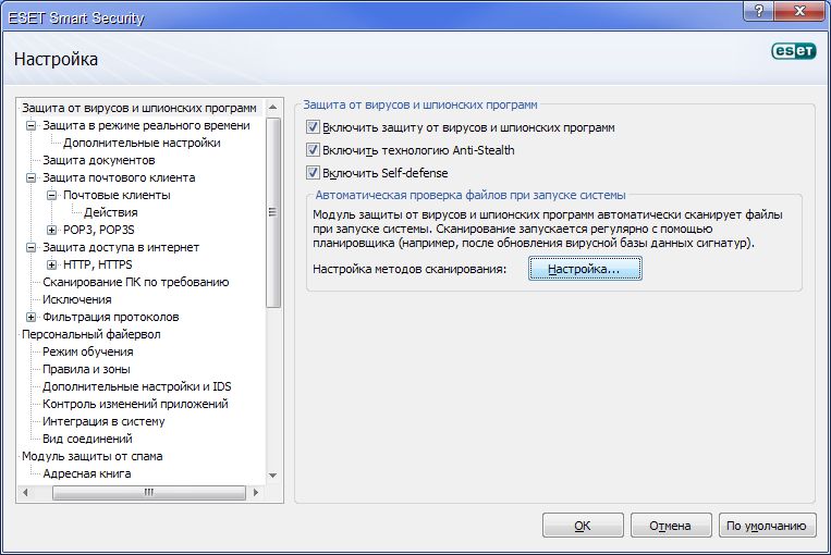 Удобство. Решение ESET NOD32 Smart Security разработано по принципу минимальной нагрузки на систему и занимает не более 48Мб памяти.